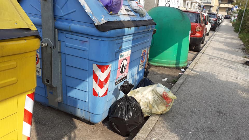 Oggi però la situazione che si presentava nei pressi dei cassonetti delle immondizie in via Genova era terrificante e sconfortante: il bidone della pastica era pieno e alcuni sacchi erano stati depositati all’esterno, fuori dal bidone della carta c’erano addirittura una scatola con delle uova e delle mutande. Altrove ancora residui organici e poi l’immancabile rifiuto di nuova generazione: la mascherina. Dietro a cotanto squallore c’è sicuramente un comportamento umano incivile, ma del resto anche dietro lo spaccio di droga c’è una richiesta, umana, degli effetti che tali sostanze danno. Il degrado assume varie forme e se è vero, e lo è, che il sindaco non può essere dappertutto sempre, e nemmno la polizia locale, è altrettanto vero che un mix tra controlli frequenti, telecamere e nettezza urbana potrebbero evitare certi ‘spettacoli’.