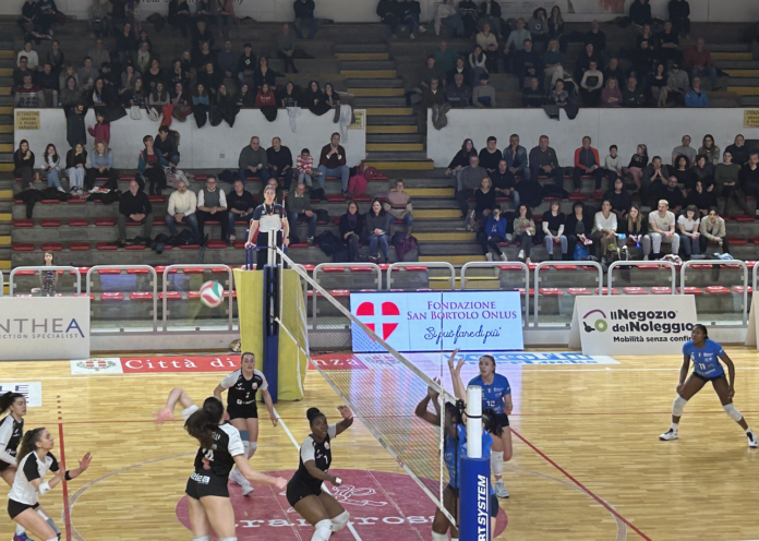 Meritata rivincita delle biancorosse del Vicenza Volley contro la Cortina Express Imoco San Donà, la squadra vivaio dell’Imoco Conegliano, squadra pluricampione d’Italia e d’Europa, che all’andata aveva battuto le biancorosse con un secco 3-0. Le trevigiane, tutte molto dotate non solo tecnicamente ma anche fisicamente e con la “più vecchia” nata nel 2006, stavolta hanno ceduto per 3-1 (25-16, 25-17, 20-25, 25-23) alle ragazze di di Mariella Cavallaro al palasport città di Vicenza a conferma dei loro progressi che, dopo la vittoria di oggi, possono far pensare a traguardi sempre più ambiziosi (lancio dopo la partita ieri alle 23.55, aggiornamento oggi con nota club e dati, ndr).