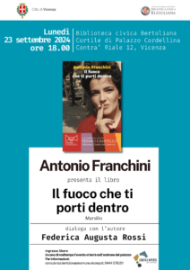 Due gli autori finalisti del Premio Campiello 2024 ad essere ospitati nella rassegna: venerdì 13 settembre Federica Manzon presenterà il suo libro “Alma”, edito da Feltrinelli. L’autrice scrive un romanzo dove l’identità, la memoria e la storia – personale, familiare, dei Paesi – si cercano e si sfuggono continuamente, facendo di Trieste un punto di vista da cui guardare i difficili tentativi di capire chi si è e dov’è la propria casa. Lunedì 23 settembre sarà presente Antonio Franchini con il suo libro “Il fuoco che ti porti dentro” (Marsilio). Il volume racconta la vita e la morte di Angela, una donna dal carattere impossibile. E madre dell’autore. Il romanzo è un’indagine nella sua vita, nelle sue passioni e nei suoi odi, alla ricerca di una spiegazione possibile. La forma è quella della commedia, il contenuto quello della tragedia. Entrambe le presentazioni saranno condotte da Federica Augusta Rossi.