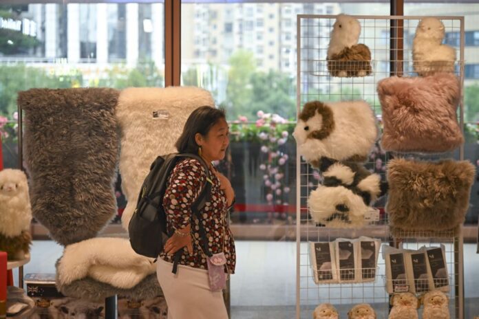 SHANGHAI (CINA) (ITALPRESS/XINHUA) – Una donna sceglie dei prodotti alla CIIE Bazaar City Arena a Shanghai, nella Cina orientale, l’1 novembre 2025. L’ottava edizione della China International Import Expo (CIIE) è in programma qui dal 5 al 10 novembre.