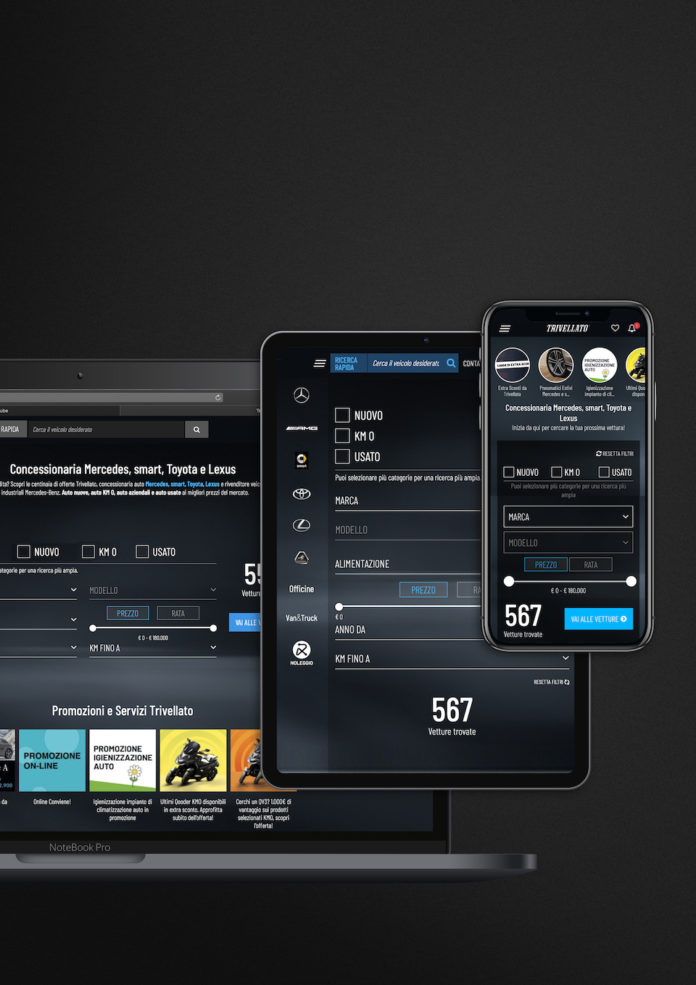 La ricerca dell’auto oggi passa dal web. Ecco perché Trivellato (concessionaria Mercedes, smart, Toyota e Lexus) su www.trivellato.it ha implementato Elasticsearch, ricerca guidata, notifiche (come sui social) sulle offerte più convenienti, prenotazione online del veicolo, lista dei preferiti e tante altre funzionalità a misura di automobilista 2.0. Strumenti applicati a un’offerta, aggiornata in tempo reale, che annovera oltre 400 veicoli, con 16 sedi in Veneto e uno staff di 450 professionisti impegnati quotidianamente per la soddisfazione del cliente.