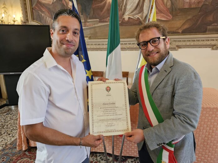 Come riconoscimento per il generoso gesto il sindaco ha consegnato a Zordan una pergamena di ringraziamento.