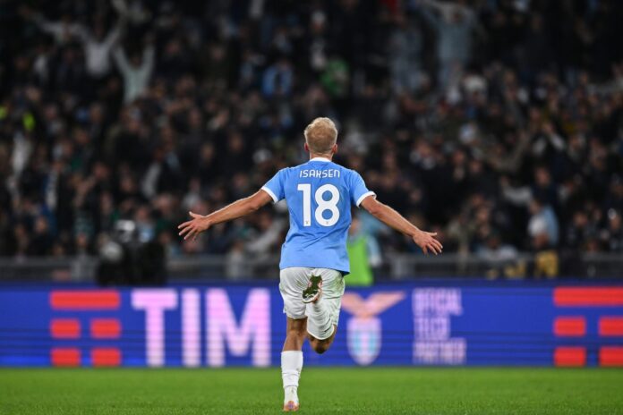 LAZIO (4-3-3): Provedel 6.5; Lazzari 6 (28’st Pellegrini 6), Gila 6, Romagnoli 6 (1’st Provstgaard 5.5), Marusic 6; Guendouzi 6, Cataldi 5.5, Basic 5.5 (17’st Vecino 6); Isaksen 7 (39’st Pedro sv), Dia 4.5 (39’st Noslin sv), Zaccagni 7.5. In panchina: Mandas, Furlanetto, Patric, Belahyane, Hysaj. Allenatore: Sarri 6.