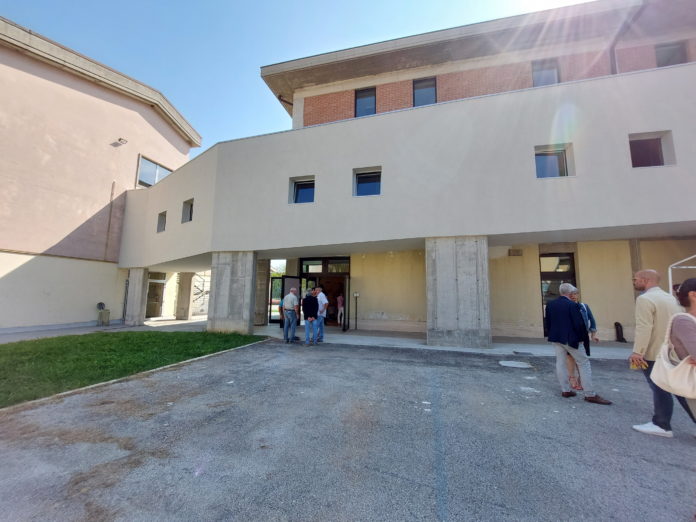 E’ stata sistemata anche l’area esterna, con percorsi in calcestruzzo drenante ed ecosostenibile e nuovo tappeto erboso.