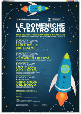A teatro con mamma e papà, per vivere insieme la magia degli spettacoli. Anche in questo 2018 l?Assessorato alla Cultura della Città di Montecchio Maggiore, in collaborazione con Arteven, Regione del Veneto e Ministero dei beni e delle attività culturali e del turismo, propone ?Le domeniche a teatro?, parte integrante del programma annuale di ?Montecchio Maggiore città per i bambini?.