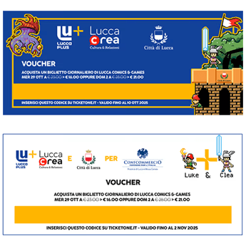 (Adnkronos) – A meno di due mesi dal festival, sotto l’egida del Comune di Lucca, due società del gruppo – Lucca Crea e Lucca Plus – stringono un patto per arricchire ulteriormente le opportunità dei lucchesi. Una grande promozione cui si unisce anche Confcommercio. Lucca Crea, con il Comune di Lucca e Lucca Plus, realizzerà 10.000 voucher con uno sconto di 7€ per il primo e ultimo giorno di manifestazione per i residenti del Comune di Lucca. La promozione poi proseguirà in collaborazione con Confcommercio nella settimana successiva all’inaugurazione delle mostre di Palazzo Guinigi. Saranno disponibili cartoline con codici sconto che verranno distribuite sul territorio a settembre da Lucca Plus e in ottobre dagli esercenti che aderiranno al progetto. La distribuzione avverrà dal 25 settembre al 3 ottobre: ogni cartolina riporterà un codice, che utilizzato al momento dell’acquisto del biglietto garantirà uno sconto sul titolo di accesso giornaliero nei giorni di mercoledì 29 ottobre (biglietto scontato a 16 €, anziché 23 €) e domenica 2 novembre (biglietto scontato a 21 €, anziché 28 €). I codici saranno utilizzabili sul portale di Ticketone fino al 10 ottobre. Per i cittadini lucchesi che avessero già acquistato in precedenza un biglietto giornaliero per i giorni interessati dalla promozione, Lucca Plus metterà a disposizione un voucher del valore di 7 €, spendibile entro il 31 marzo 2026 presso le casse automatiche del parcheggio Mazzini. Il voucher potrà essere ritirato esibendo il titolo acquistato online in precedenza sempre dal 25 settembre al 3 ottobre presso l’Ufficio Accoglienza Turistica in Piazzale Verdi (Vecchia Porta San Donato) ogni giorno dalle 10 alle 18,30 festivi inclusi. La collaborazione con Lucca Plus, società consorella che gestisce i servizi di accoglienza turistica, le torri civiche e i parcheggi cittadini, prevede per la prima volta, una serie di agevolazioni dedicate: Per i cittadini lucchesi saranno disponibili 700 posti auto distribuiti nei parcheggi straordinari “Don Baroni” e “Polo Fiere – Japan”, al costo agevolato di 10 € (pari al 50% della tariffa ordinaria), per i due giorni 29 ottobre e 2 novembre. I tagliandi potranno essere acquistati tutti i giorni, dal 25 settembre al 3 ottobre, all’Ufficio Accoglienza Turistica in Piazzale Verdi (Vecchia Porta San Donato), ogni giorno dalle 10.00 alle 18.00, festivi inclusi. Ai partecipanti alla manifestazione, muniti di braccialetto, verrà praticato il prezzo ridotto di 4 € anziché 8 € per l’accesso alla Torre Guinigi. Lucca Plus e Lucca Crea amplieranno il bookshop con uno spazio dedicato all’iniziativa, arricchendo l’offerta con materiali e proposte collegate all’evento. Come funziona la promozione con Confcommercio? Funziona allo stesso modo di quella con Lucca Plus, ma la distribuzione avverrà dal 18 al 25 ottobre nelle attività commerciali che avranno aderito al progetto, e saranno riscattabili fino al 2 novembre. Una seconda iniziativa, invece, permetterà alle attività commerciali di promuovere una propria scontistica dedicata agli addetti ai lavori del festival, che rappresentano un comparto di oltre 20mila professionisti: in primis gli espositori, ma anche le migliaia di operatori che intervengono per realizzare il gigantesco evento lucchese. A indicare la partecipazione all’iniziativa promozionale sarà una speciale vetrofania con Luke e Clea (i due personaggi di Sergio Algozzino), che applicata sulla vetrina, aiuterà a identificare il negozio aderente. La famiglia Guinigi “nume tutelare” dell’edizione 2025: Torre e Palazzo ospiteranno uno dei progetti più intriganti del festival. Al piano terra del Palazzo, si troverà l’esposizione più canonica dedicata a Sergio Algozzino e al suo variegato lavoro nel fumetto, che non mancherà comunque di sorprese celebrando il talento umanistico e globale dell’autore palermitano. Nella Torre invece esploderà tutta la creatività innovativa dell’artista che – accompagnato dai due personaggi che ha regalato alla città, Luke e Clea – rivisiterà in grafica a 8 bit la più recente tradizione dei poster di Lucca Comics & Games, a partire dell’indimenticabile drago di Ciruelo che nel 2003 sfidava la Torre e i suoi difensori: 23 manifesti, mascotte storiche, tavole originali andranno a comporre la prima grande mostra dedicata alla multiforme opera di Sergio Algozzino. In una sala al piano terra saranno esposti i diversi modi dell’artista di realizzare fumetti (da quello più realistico a quello più umoristico, dalle storie dedicate alla musica a quelle per il fumetto seriale, con anche qualche piccola anteprima), mentre il cammino verso la cima della Torre Guinigi sarà il fatidico viaggio dedicato ai poster. In questa scalata – che sarà la prima mostra di Lucca Comics & Games all’interno della torre più iconica della città murata – gli accompagnatori saranno due piccoli personaggi, Luke & Clea: nati quasi per gioco con il poster di Collezionando 2023 a celebrare il nome di Lucca Crea, di cui sono diventate le mascotte e ne racconteranno le tante avventure.