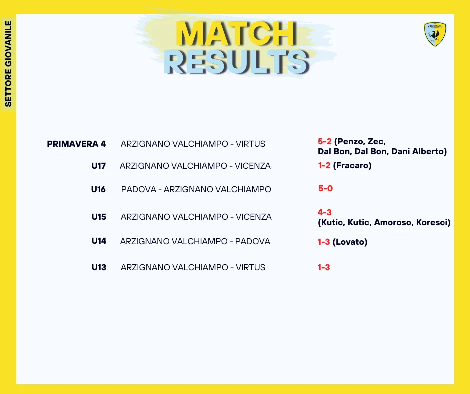 Fonte: SETTORE GIOVANILE. RISULTATI GARE 03-04 DICEMBRE 2022. , Arzignano Valchiampo