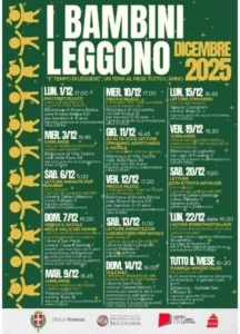 Con dicembre si inaugura a Vicenza, a cura della Biblioteca Bertoliana, il mese tematico “I bambini leggono” dedicato ad attività pensate per i più piccoli per incoraggiarli ad interessarsi ai libri attraverso letture animate, laboratori creativi, incontri tematici e momenti speciali ispirati all’atmosfera natalizia e invernale.