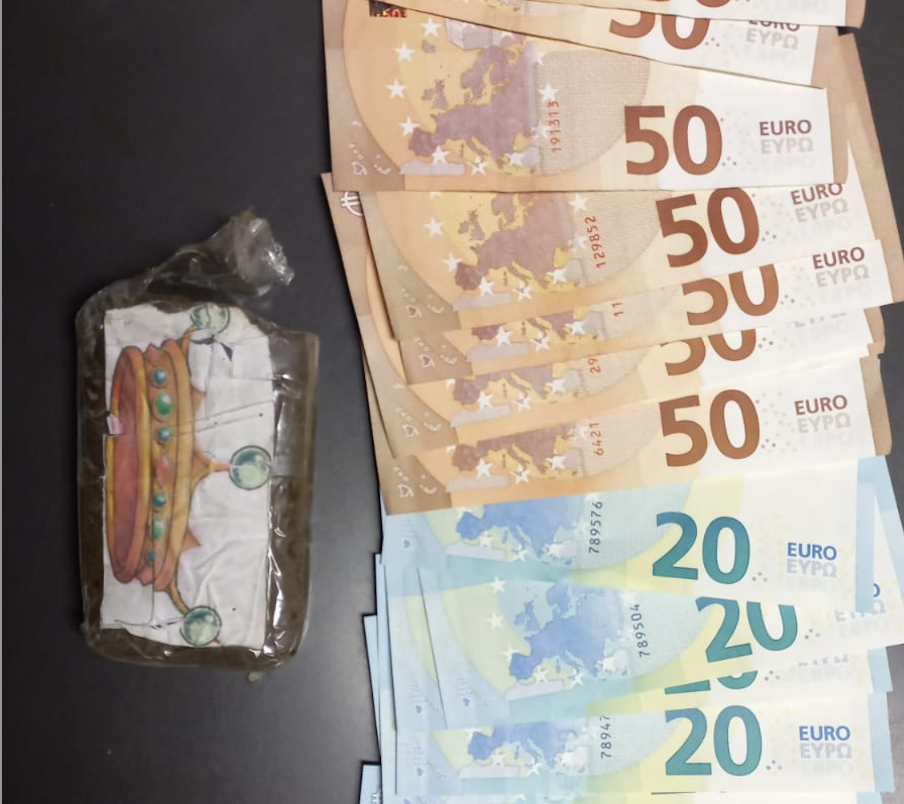 - 1 panetto di hashish del peso di circa 90 grammi, del quale erano già state vendute dosi per circa 10 grammi;