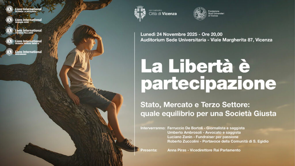L’evento, promosso dai Lions Club di Vicenza e patrocinato dal Comune e dalla Fondazione Studi Universitari, prende ispirazione dalle parole “La libertà è partecipazione” per analizzare l’impegno civico come base della democrazia.